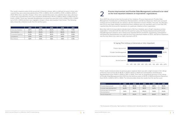 The other trend that we have identified is a new focus on provider satisfaction related to collection of provider data and the credentialing process . In our 2020 and 2021 surveys , approximately 30 % of organizations indicated that they survey providers to ascertain their satisfaction with the credentialing and privileging process . When we speak with HealthStream customers , we have noted an emphasis on making sure that the processes put in place are “ provider friendly ” – and a goal that is almost always included in what a customer wants to achieve in implementation of new software ( or maximizing what they already have ) is to increase