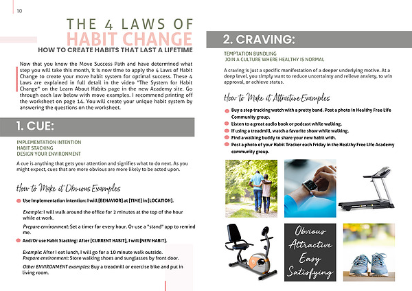Now that you know the Move Success Path and have determined what step you will take this month, it is now time to apply the 4 Laws of Habit Change to create your move habit system for optimal success. These 4 Laws are explained in full detail in the video "The System for Habit Change" on the Learn About Habits page in the new Academy site. Go through each law below with move examples. I recommend printing off the worksheet on page 14. You will create your unique habit system by answering the questions on the worksheet.