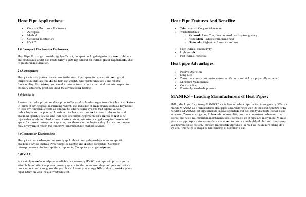 Heat Pipe Applications: