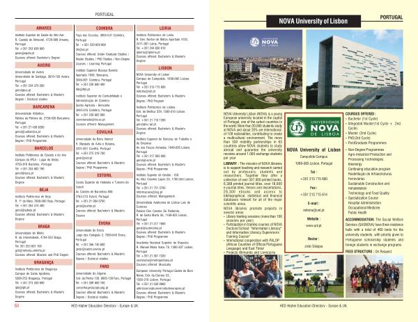 NOVA University of Lisbon Campus de Campolide , 1099-085 Lisbon , Portugal Tel : + 351 213 715 600 reitoria @ unl . pt Courses offered : Bachelor ' s & Master ' s Degree / PhD Program