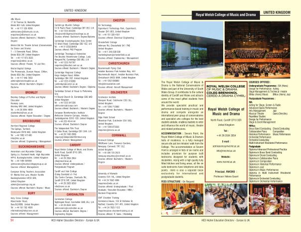 Royal Welsh College of Music and Drama North Road , Cardiff CF10 3ER , United Kingdom Tel : + 44 29 2034 2854 info @ rwcmd . ac . uk Courses offered : Undergraduate / Postgraduate Program