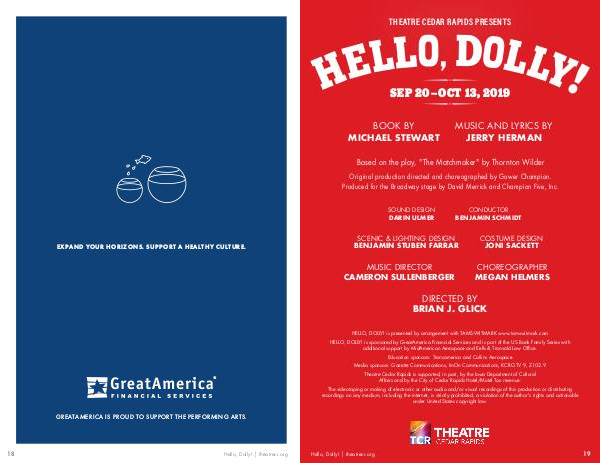 EXPAND YOUR HORIZONS. SUPPORT A HEALTHY CULTURE. ® GREATAMERICA IS PROUD TO SUPPORT THE PERFORMING ARTS. 18 Hello, Dolly! | theatrecr.org