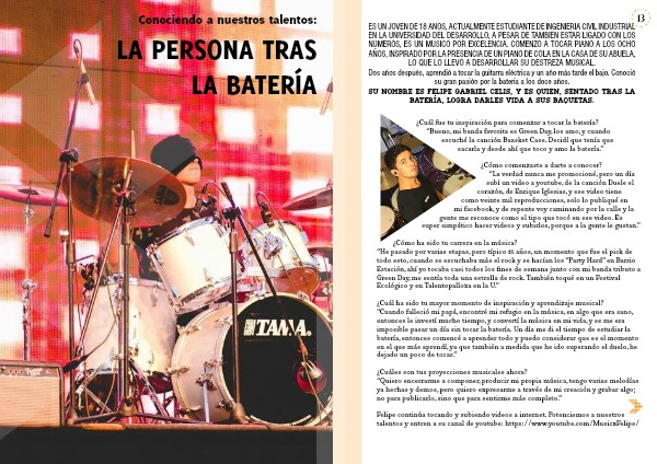 Su nombre es Felipe Gabriel Celis, y es quien, sentado tras la batería, logra darles vida a sus baquetas.