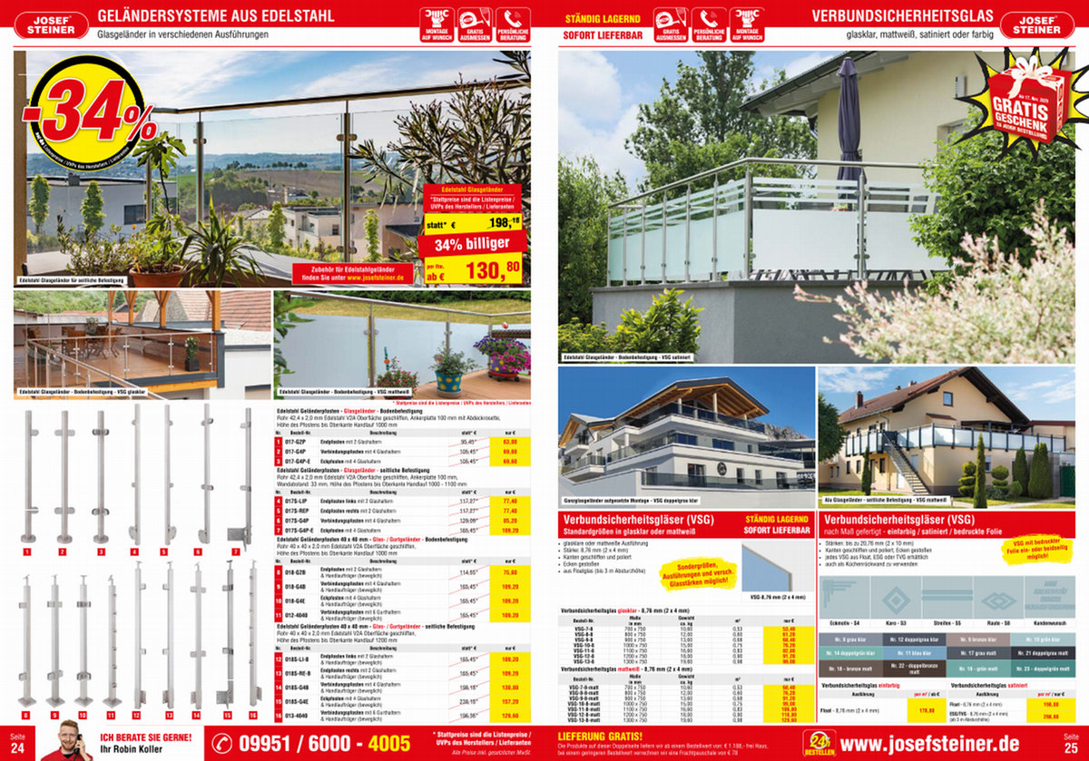 • jedes VSG aus Float, ESG oder TVG erhältlich