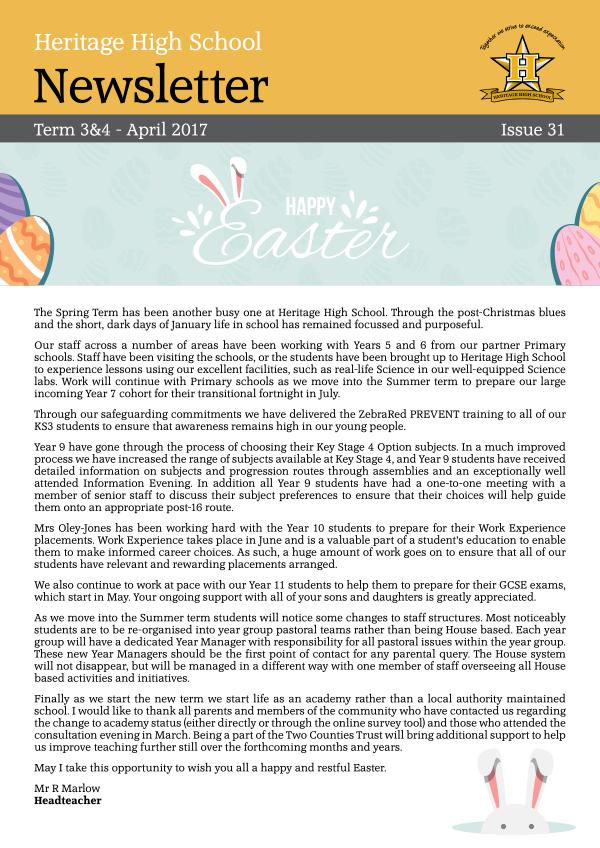 Heritage High School Spring Newsletter 2018 2017 term 3-4