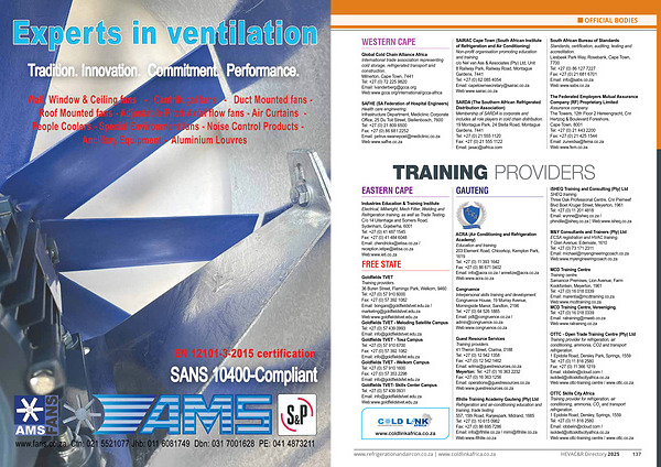www . refrigerationandaircon . co . za | www . coldlinkafrica . co . za HEVAC & R Directory 2025 137