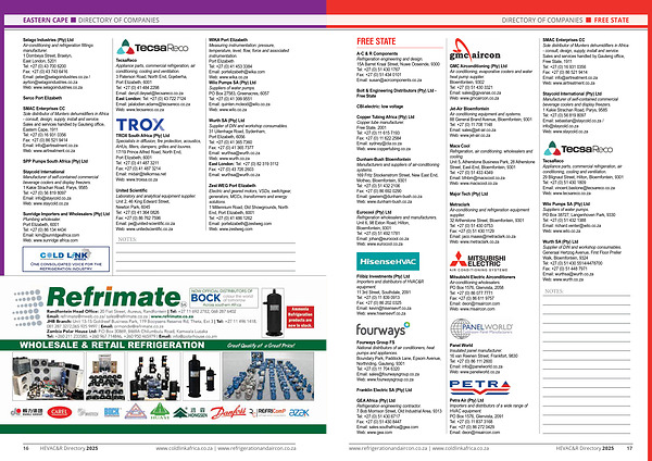 16 HEVAC & R Directory 2025 www . coldlinkafrica . co . za | www . refrigerationandaircon . co . za