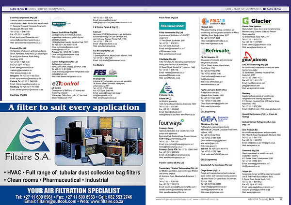 www . refrigerationandaircon . co . za | www . coldlinkafrica . co . za HEVAC & R Directory 2025 27