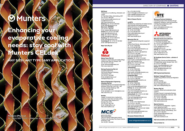 www . refrigerationandaircon . co . za | www . coldlinkafrica . co . za HEVAC & R Directory 2025 33