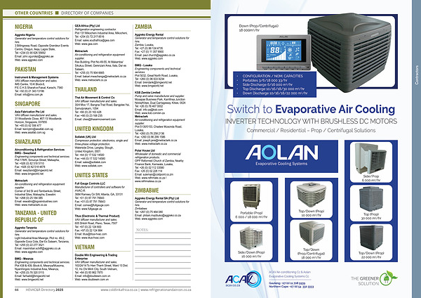 66 HEVAC & R Directory 2025 www . coldlinkafrica . co . za | www . refrigerationandaircon . co . za
