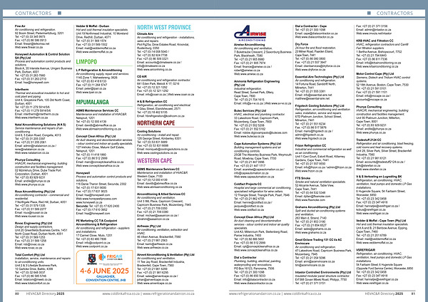 www . refrigerationandaircon . co . za | www . coldlinkafrica . co . za HEVAC & R Directory 2025 81