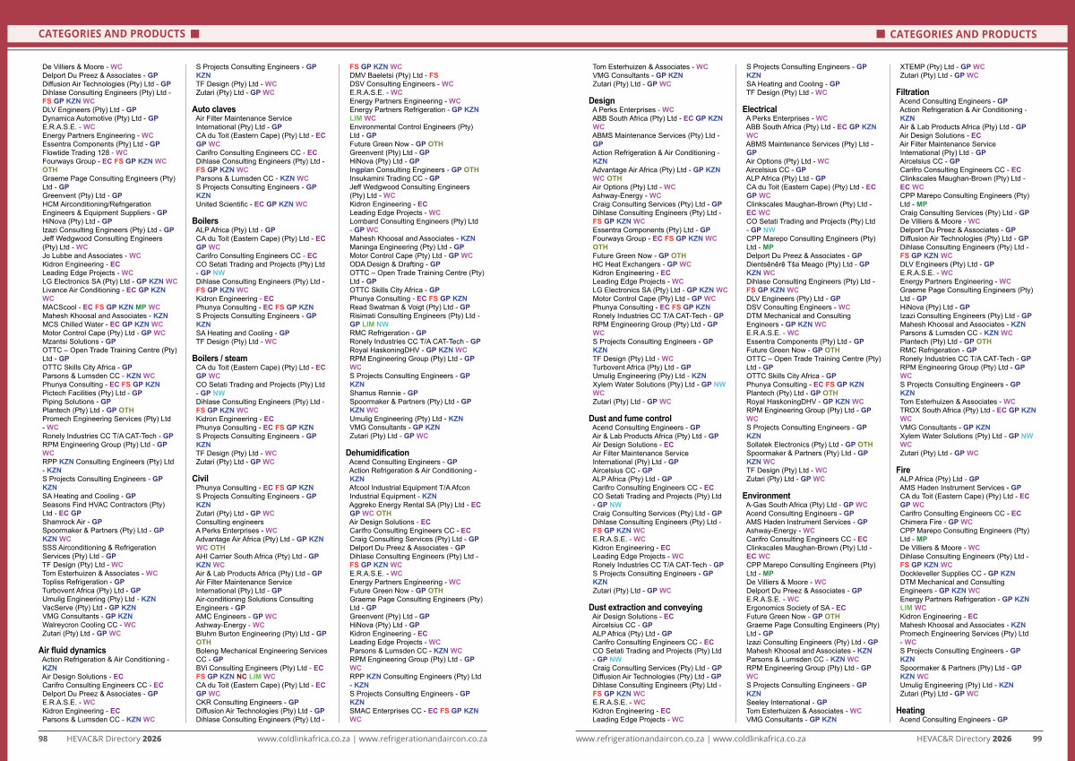 www. refrigerationandaircon. co. za | www. coldlinkafrica. co. za HEVAC & R Directory 2026 99