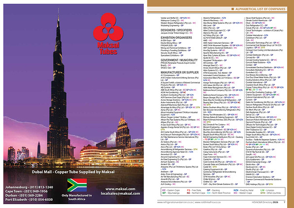 www. refrigerationandaircon. co. za | www. coldlinkafrica. co. za HEVAC & R Directory 2026 7