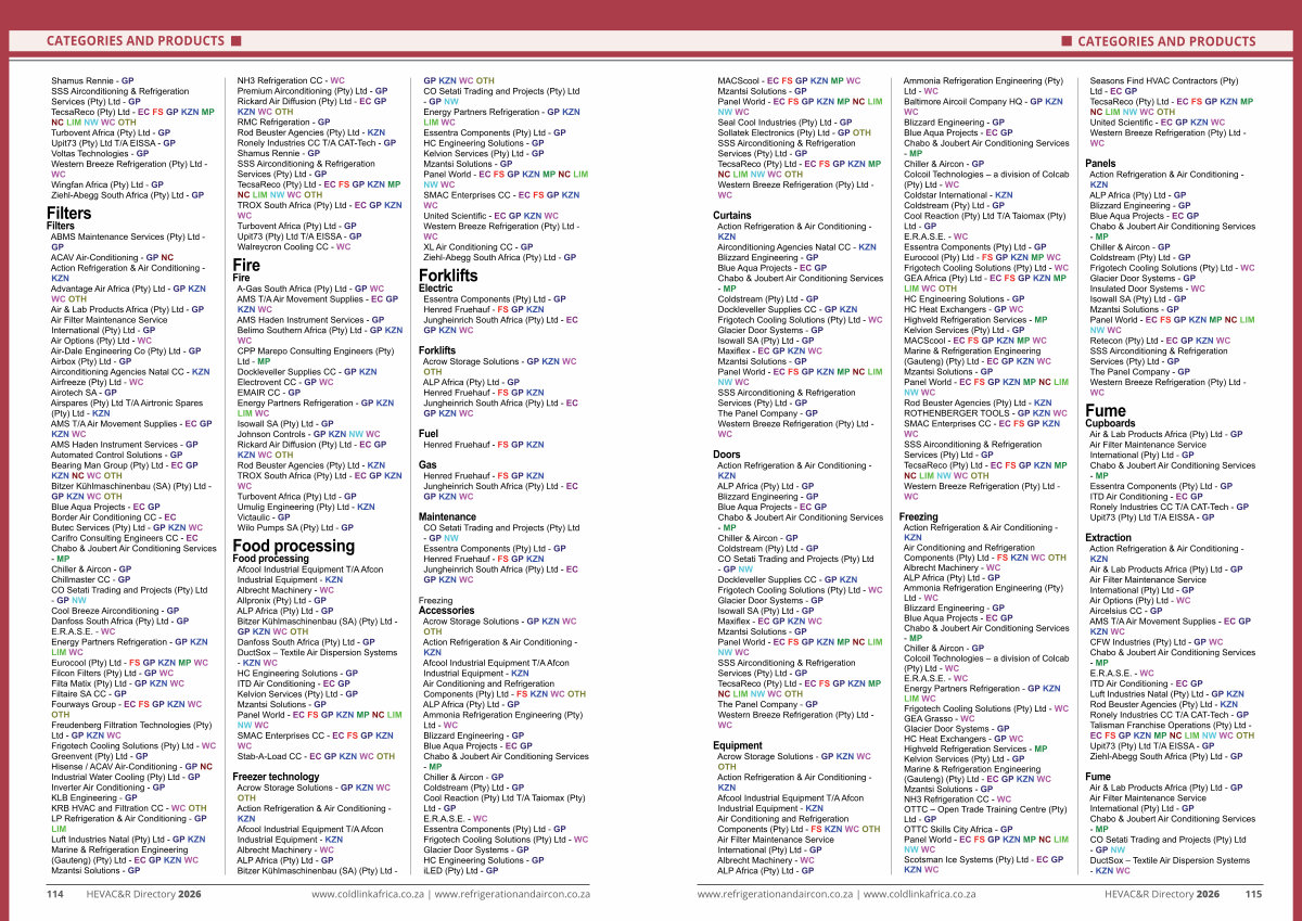 114 HEVAC & R Directory 2026 www. coldlinkafrica. co. za | www. refrigerationandaircon. co. za