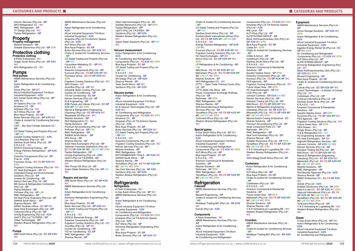 www. refrigerationandaircon. co. za | www. coldlinkafrica. co. za HEVAC & R Directory 2026 125