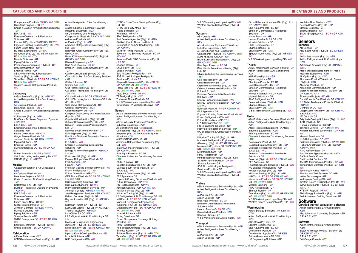 126 HEVAC & R Directory 2026 www. coldlinkafrica. co. za | www. refrigerationandaircon. co. za