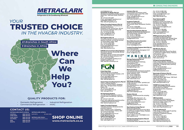 www. refrigerationandaircon. co. za | www. coldlinkafrica. co. za HEVAC & R Directory 2026 139