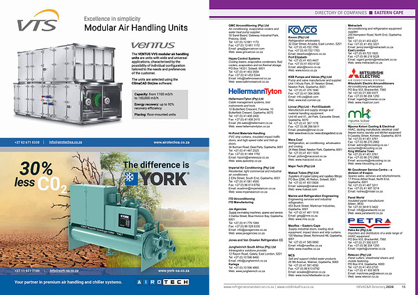 www. refrigerationandaircon. co. za | www. coldlinkafrica. co. za HEVAC & R Directory 2026 15