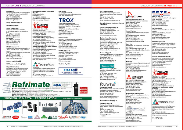 www. refrigerationandaircon. co. za | www. coldlinkafrica. co. za HEVAC & R Directory 2026 17