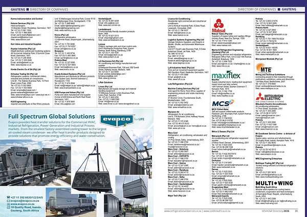 www. refrigerationandaircon. co. za | www. coldlinkafrica. co. za HEVAC & R Directory 2026 31