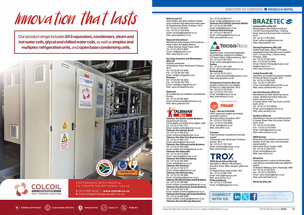 www. refrigerationandaircon. co. za | www. coldlinkafrica. co. za HEVAC & R Directory 2026 47