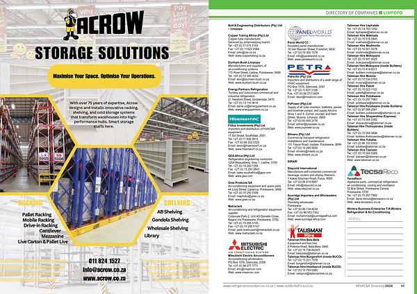 www. refrigerationandaircon. co. za | www. coldlinkafrica. co. za HEVAC & R Directory 2026 49