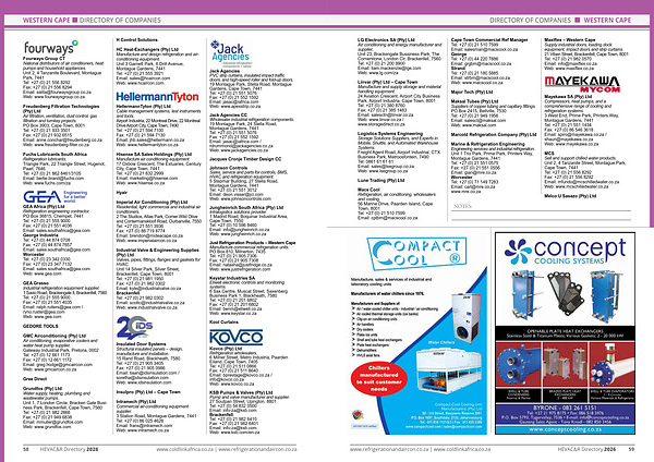 58 HEVAC & R Directory 2026 www. coldlinkafrica. co. za | www. refrigerationandaircon. co. za