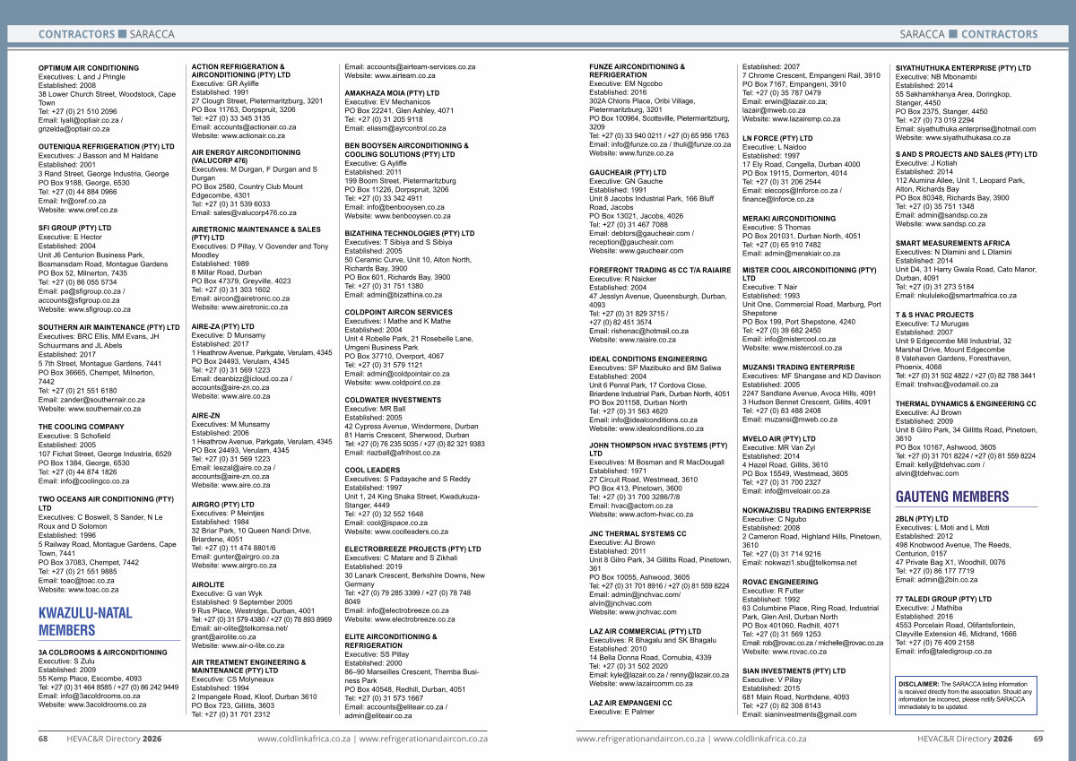 www. refrigerationandaircon. co. za | www. coldlinkafrica. co. za HEVAC & R Directory 2026 69