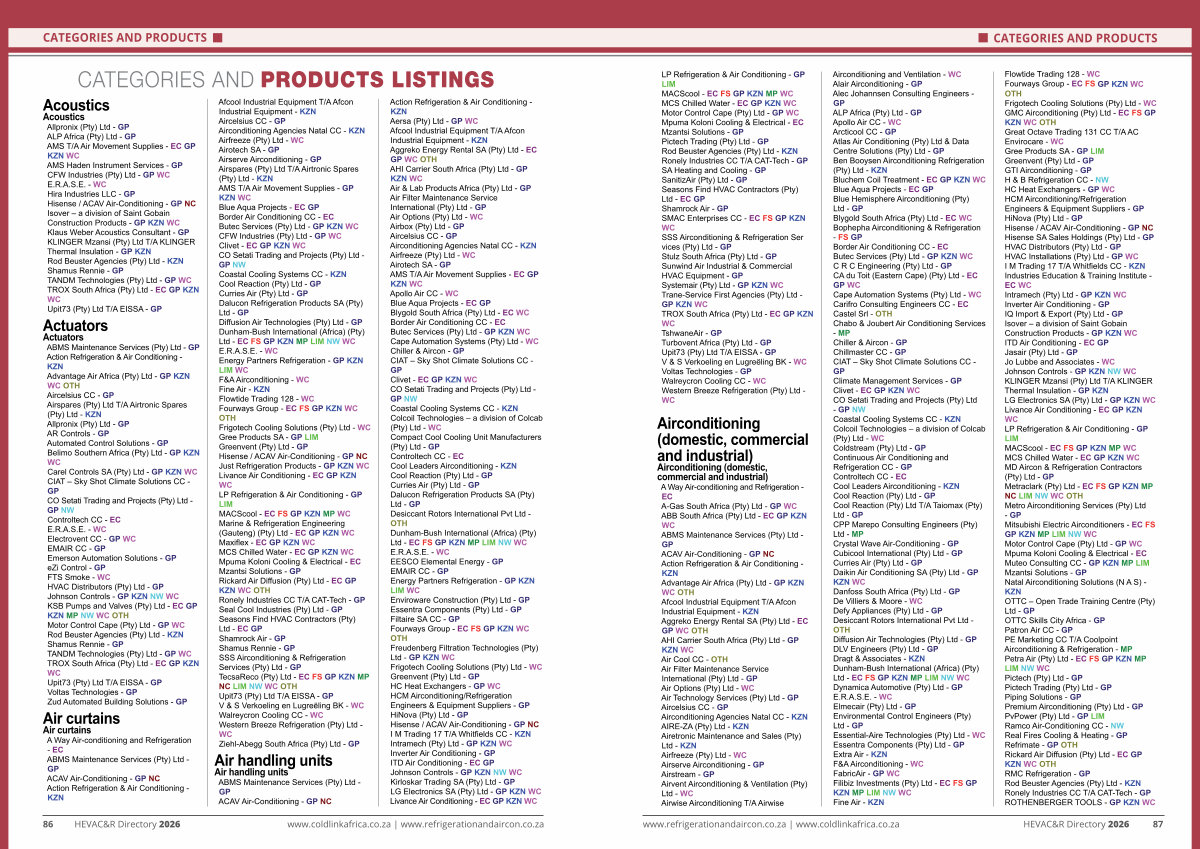 86 HEVAC & R Directory 2026 www. coldlinkafrica. co. za | www. refrigerationandaircon. co. za