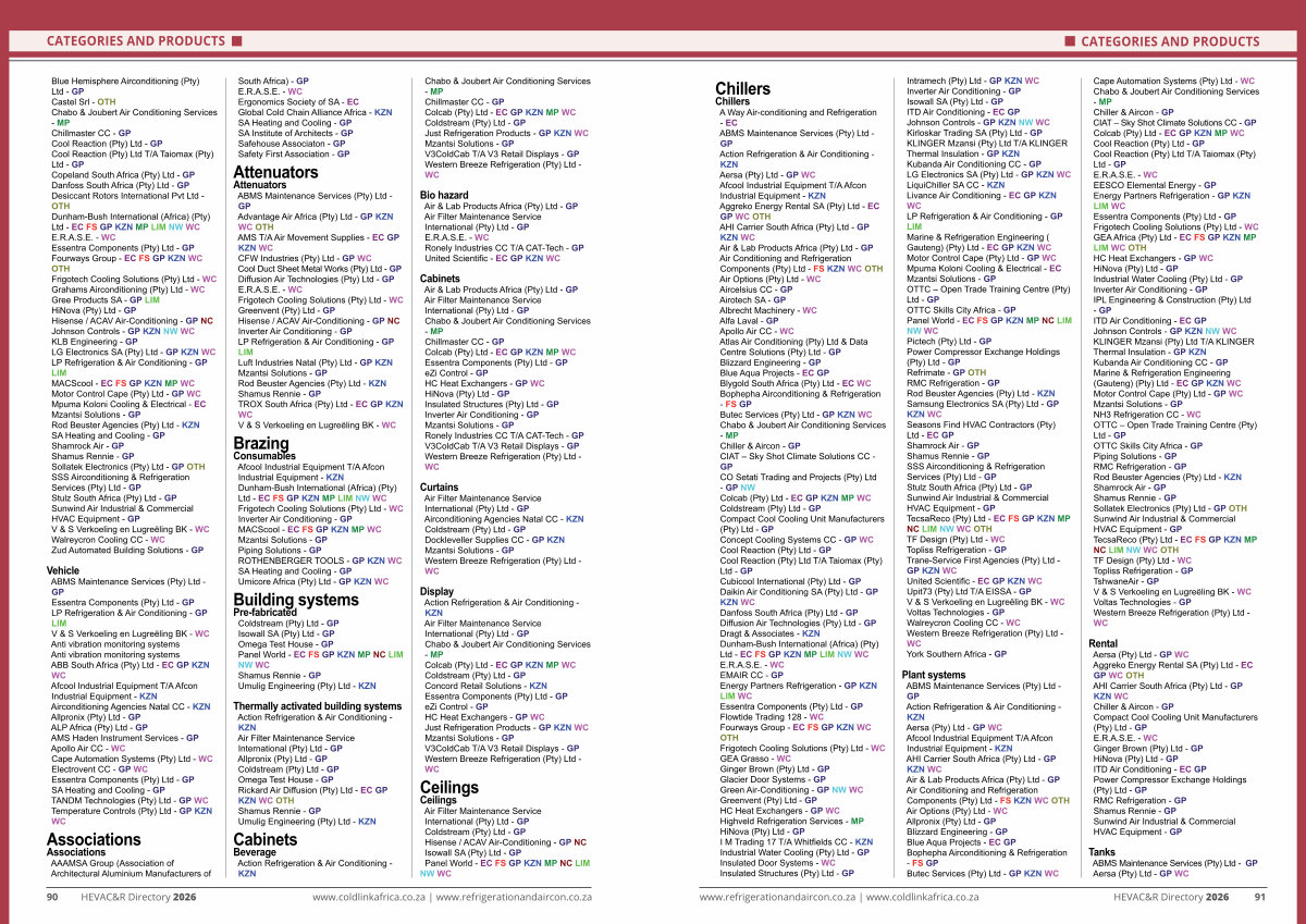 90 HEVAC & R Directory 2026 www. coldlinkafrica. co. za | www. refrigerationandaircon. co. za