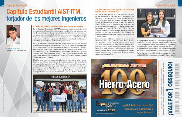 Del 30 de septiembre al 3 de octubre , un grupo de estudiantes del Instituto Tecnológico de Morelia y miembros del Capítulo Estudiantil AIST-ITM participaron en el Congreso Internacional de Materiales , Aplicaciones y Tecnologías ( IMAT 2024 ), y en el Congreso de Innovaciones en Tratamientos Térmicos ( IFHTSE 2024 ), celebrados en la ciudad de Cleveland , Ohio , Estados Unidos . Ambos eventos reúnen a profesionales y académicos de todo el mundo para discutir los avances más recientes en ciencia de materiales y metalurgia .
