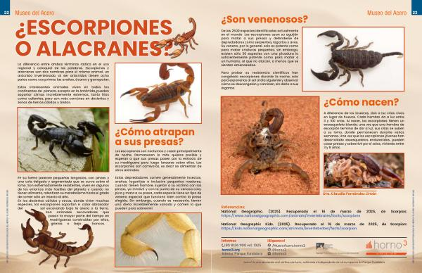 Referencias: National Geographic.( 2025). Recuperado el 16 de marzo de 2025, de Scorpios: https:// www. nationalgeographic. com / animals / invertebrates / facts / scorpions