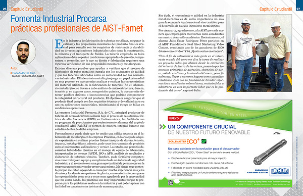 Por otra parte, agradecemos, a la AIST por cada manera que emplea para motivarnos como estudiantes en nuestro desarrollo académico. Recientemente, el alumno Julio César Rodríguez Pérez participó en el AIST Foundation ' s Real Steel Marketing Video Contest, resultando uno de los ganadores de $ 500 dólares con el video“ Y tú ¿ Quién serías en el acero”.