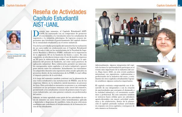 El capítulo continúa comprometido con el desarrollo de sus integrantes y con la creación de oportunidades que acerquen al alumnado a la realidad industrial y al crecimiento académico y profesional. En este semestre también se sentaron bases sólidas para un calendario agosto-diciembre con mayor actividad académica y de colaboración, dentro de la planeación el capítulo pretende realizar actividades en conjunto con otros capítulos y enriquecer de esta manera su formación.