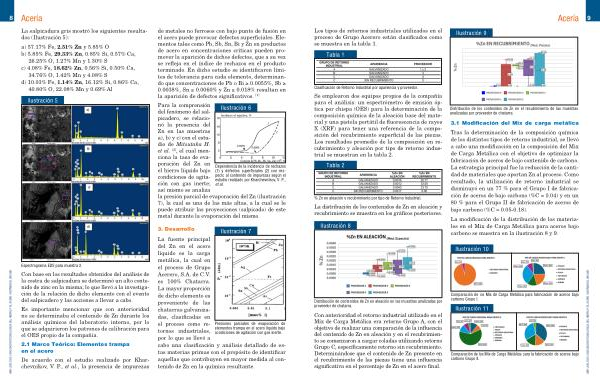 La fuente principal del Zn en el acero líquido es la carga metálica, la cual en el proceso de Grupo Acerero, S. A. de C. V. es 100 % Chatarra. La mayor proporción de dicho elemento es proveniente de las chatarras galvanizadas, clasificadas en el proceso como retornos industriales, por lo que se llevó a