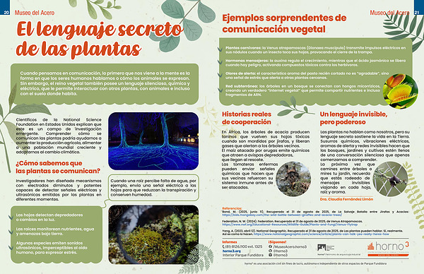 Yang, A.( 2023, abril 12). National Geographic. Recuperado el 31 de agosto de 2025, de Las plantas pueden hablar. Sí, realmente. Así es como lo hacen. https:// www. nationalgeographic. com / science / article / plants-can-talk-yes-really-heres-how