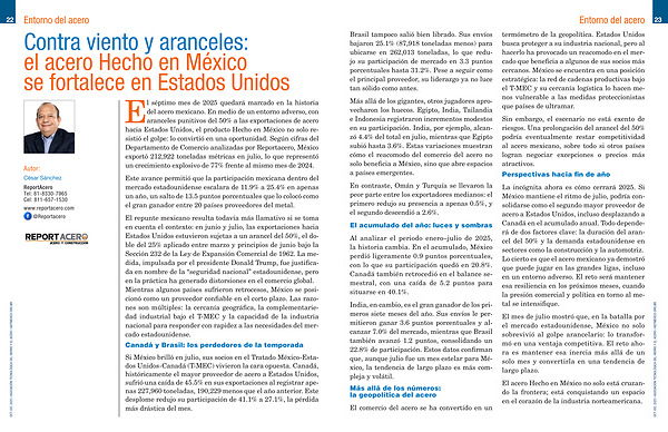 La incógnita ahora es cómo cerrará 2025. Si México mantiene el ritmo de julio, podría consolidarse como el segundo mayor proveedor de acero a Estados Unidos, incluso desplazando a Canadá en el acumulado anual. Todo dependerá de dos factores clave: la duración del arancel del 50 % y la demanda estadounidense en sectores como la construcción y la automotriz. Lo cierto es que el acero mexicano ya demostró que puede jugar en las grandes ligas, incluso en un entorno adverso. El reto será mantener esa resiliencia en los próximos meses, cuando la presión comercial y política en torno al metal se intensifique.