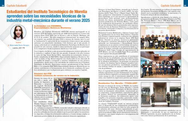 Para el Capítulo Estudiantil AIST-ITM, estas oportunidades representan un paso fundamental en la preparación de futuros ingenieros en materiales, quienes llevarán consigo no solo el conocimiento adquirido en las aulas, sino también la experiencia práctica que demanda el sector. De esta manera, se reafirma el compromiso del Instituto Tecnológico de Morelia y del capítulo estudiantil con la excelencia académica, la innovación y la formación integral de sus estudiantes.