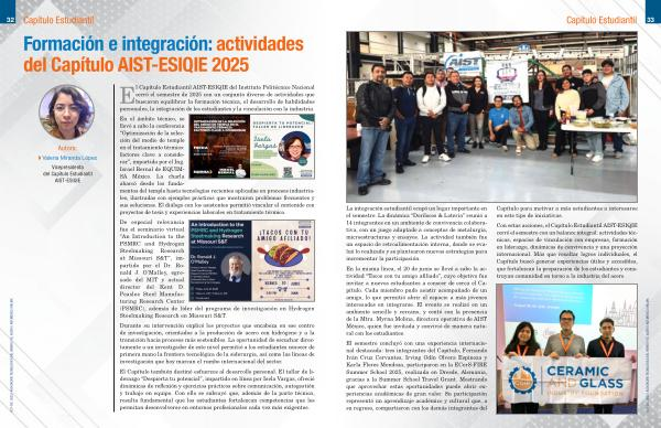Con estas acciones, el Capítulo Estudiantil AIST-ESIQIE cerró el semestre con un balance integral: actividades técnicas, espacios de vinculación con empresas, formación en liderazgo, dinámicas de convivencia y una proyección internacional. Más que resaltar logros individuales, el Capítulo buscó generar experiencias útiles y accesibles, que fortalezcan la preparación de los estudiantes y construyan comunidad en torno a la industria del acero.