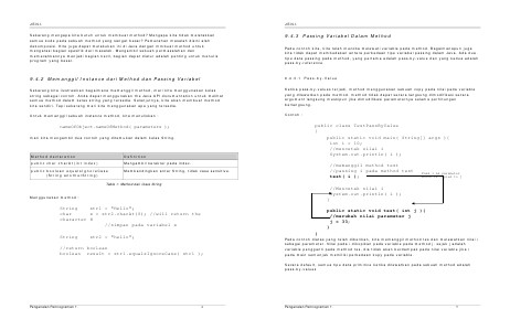 Pada contoh diatas yang telah diberikan, kita memanggil method tes dan melewatkan nilai i sebagai parameter. Nilai pada i dikopikan pada variable pada method j. sejak j adalah variable pengganti pada method tes, dia tidak akan berdampak pada nilai variable jika i pada main semenjak memiliki perbedaan kopy pada variable.