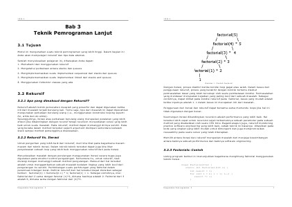 Modul ini mengenalkan suatu teknik pemrograman yang lebih tinggi. Dalam bagian ini Anda akan mempelajari rekursif dan tipe data abstrak.