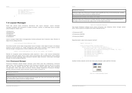 Posisi dan ukuran suatu komponen ditentukan oleh layout manager. Layout manager mengatur tampilan dari komponen di dalam kontainer. Berikut ini beberapa layout manager yang terdapat di dalam Java.