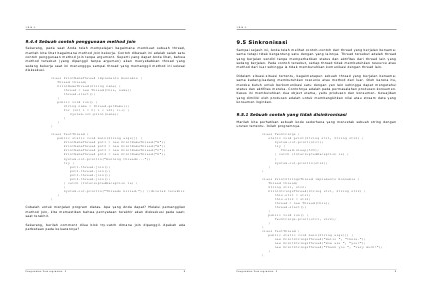 Sampai sejauh ini, Anda telah melihat contoh-contoh dari thread yang berjalan bersamasama tetapi tidak bergantung satu dengan yang lainnya. Thread tersebut adalah thread yang berjalan sendiri tanpa memperhatikan status dan aktifitas dari thread lain yang sedang berjalan. Pada contoh tersebut, setiap thread tidak membutuhkan resource atau method dari luar sehingga ia tidak membutuhkan komunikasi dengan thread lain.