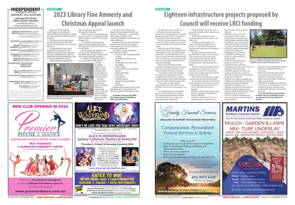 4 ISSUE 102 // DECEMBER 2023 MERRY CHRISTMAS & HAPPY HOLIDAYS ! theindependentmagazine . com . au THE HILLS INDEPENDENT