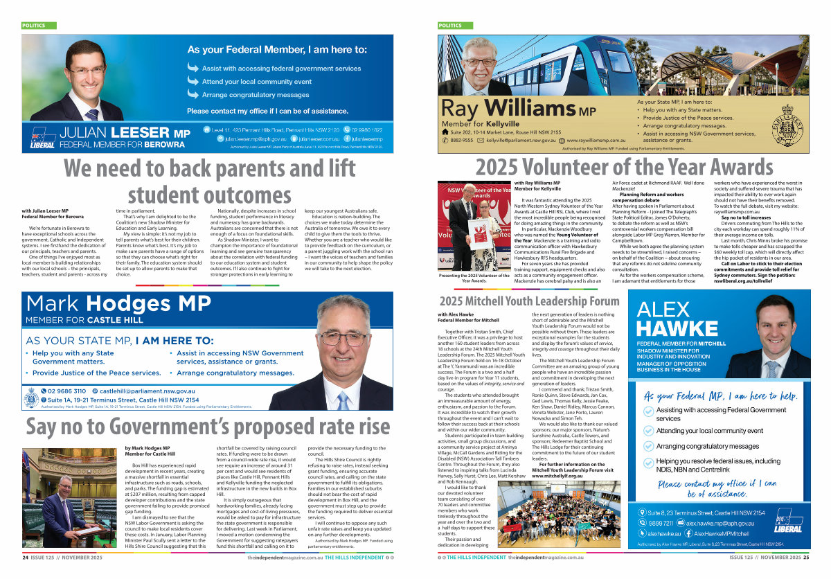 24 ISSUE 125 // NOVEMBER 2025 theindependentmagazine. com. au THE HILLS INDEPENDENT