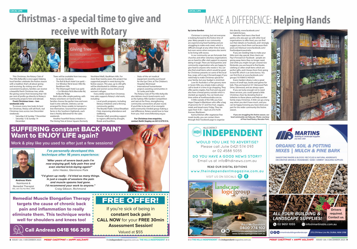 8 ISSUE 126 // DECEMBER 2025 MERRY CHRISTMAS & HAPPY HOLIDAYS! theindependentmagazine. com. au THE HILLS INDEPENDENT