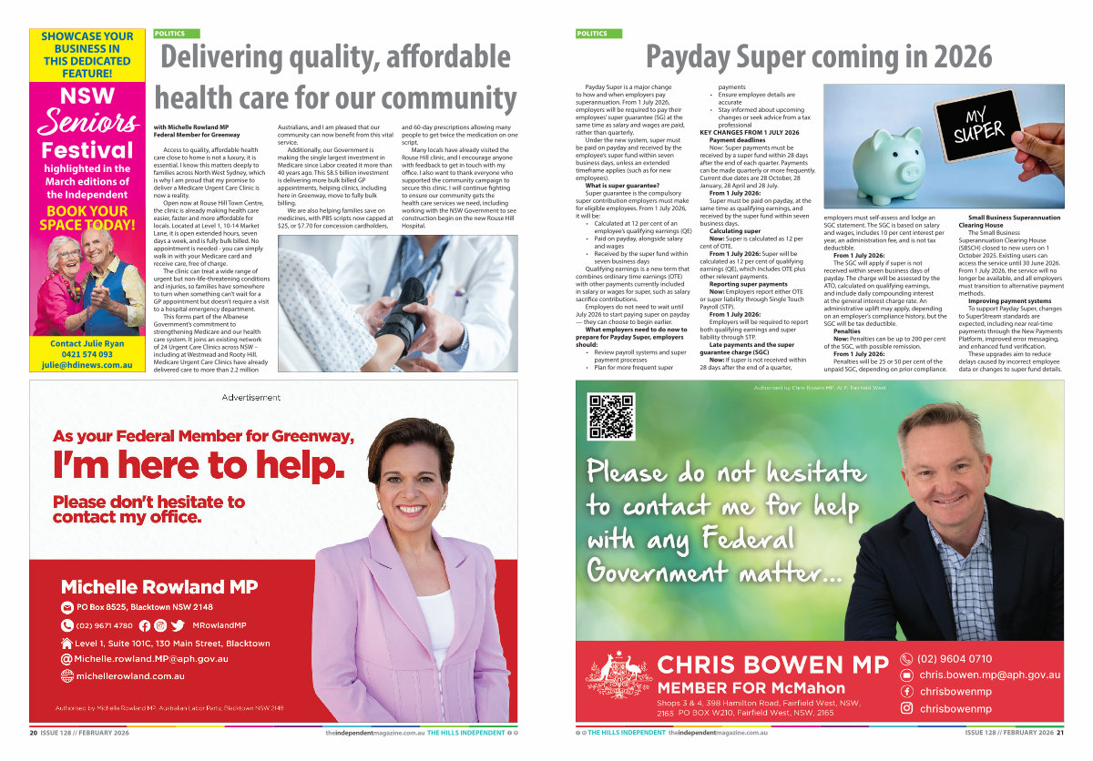 20 ISSUE 128 // FEBRUARY 2026 theindependentmagazine. com. au THE HILLS INDEPENDENT
