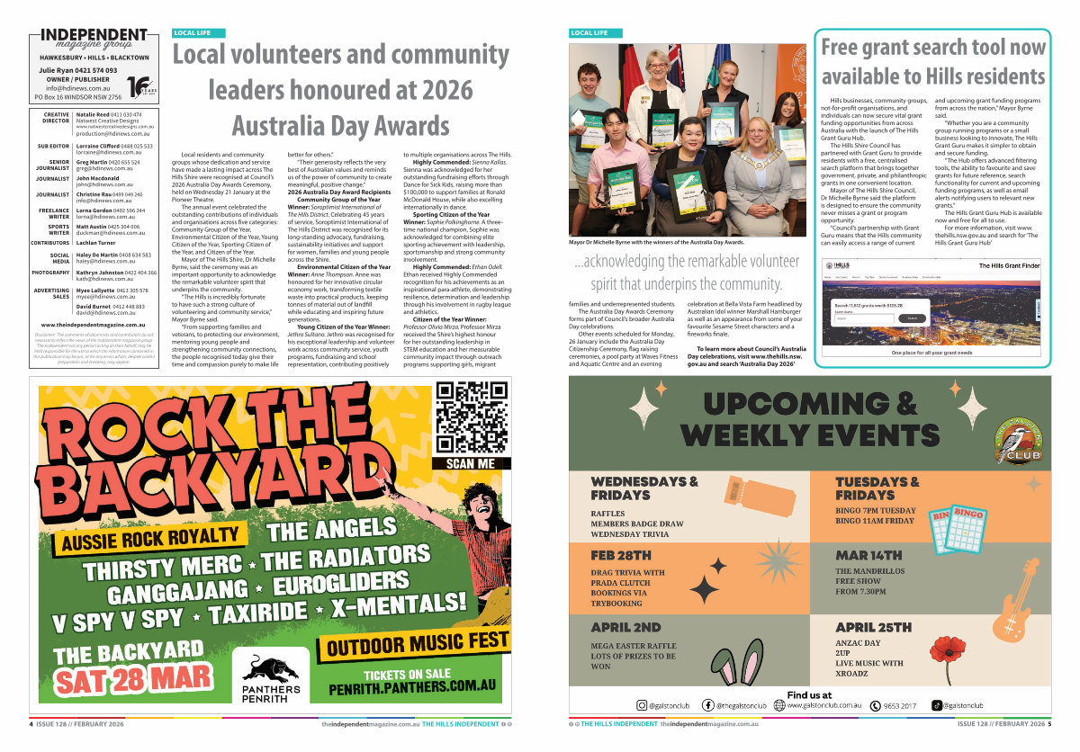 Local residents and community groups whose dedication and service have made a lasting impact across The Hills Shire were recognised at Council’ s 2026 Australia Day Awards Ceremony, held on Wednesday 21 January at the Pioneer Theatre.