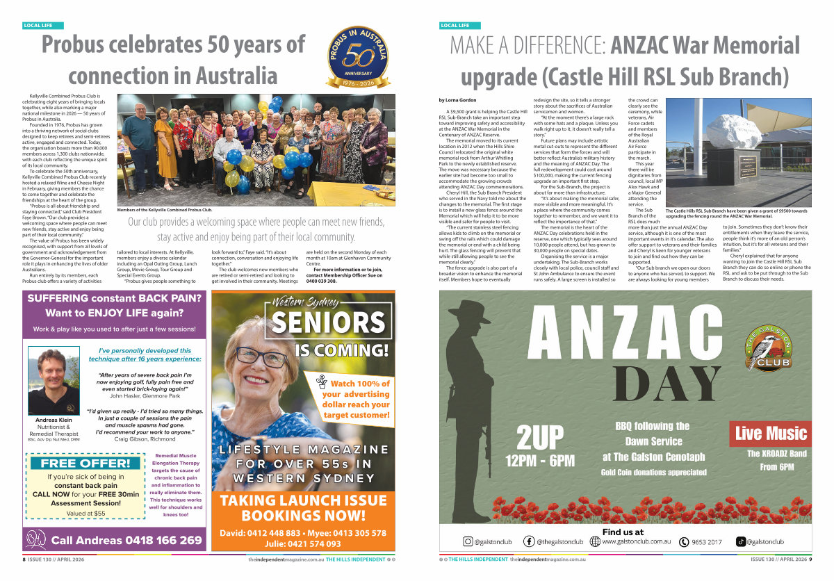 8 ISSUE 130 // APRIL 2026 theindependentmagazine. com. au THE HILLS INDEPENDENT