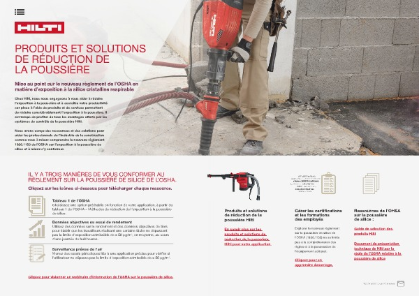 Cliquez pour visionner un webinaire d'information de l'OSHA sur la poussière de silice.